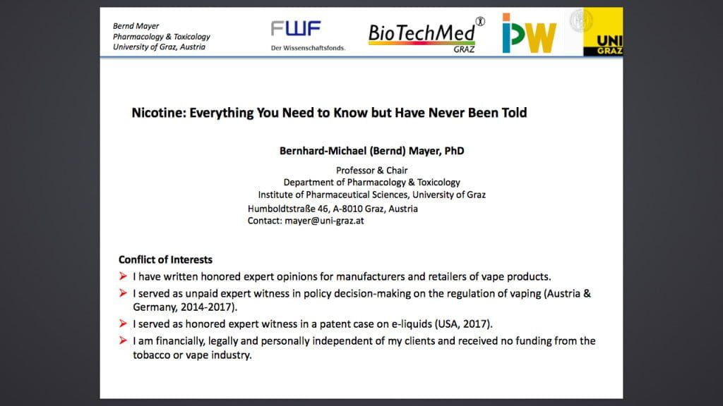 - Bernd Mayer, professore del Dipartimento di Farmacologia e Tossicologia all’Università di Graz, in Austria.