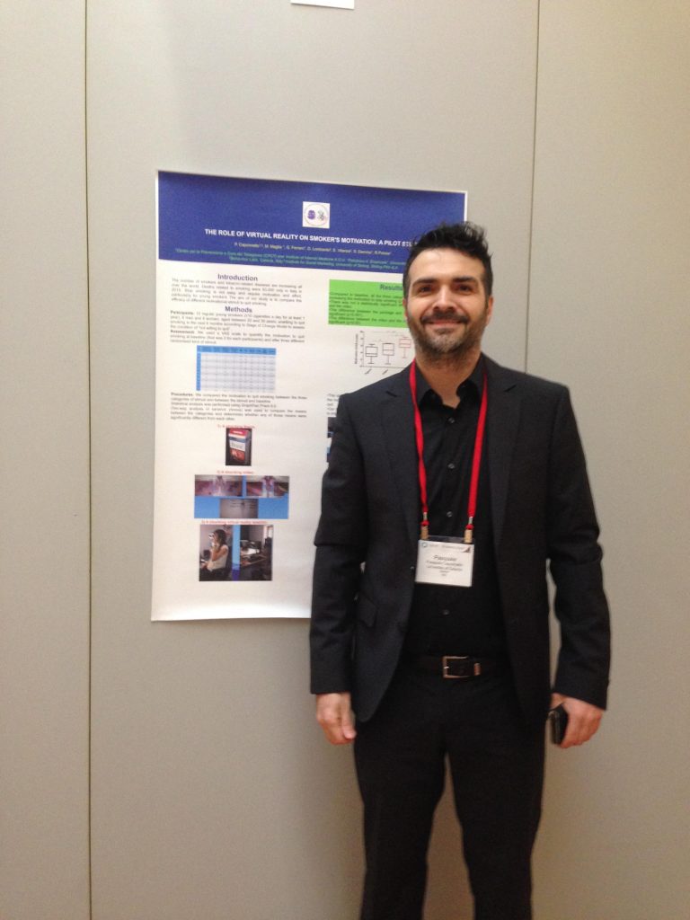 Discusso a Firenze, nell’ambito del meeting annuale della Società per la Ricerca su Nicotina e Tabacco (SRNT), il progetto di ricerca condotto dai ricercatori LIAF insieme ai tecnici di Behaviour Labs, per far smettere di fumare i fumatori di sigaretta convenzionale con l’ausilio della realtà virtuale.